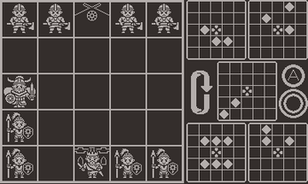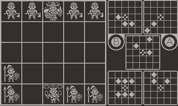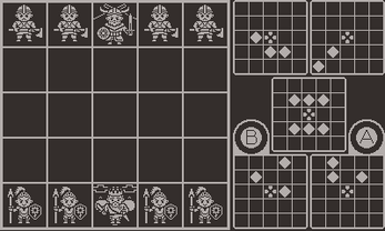 A 2 person Chess-like strategy game inspired by Onitama from Shimpei Sato. Built for the Playdate! Win by taking the enemy king or controlling the king's starting tile! Controls: Use the d-pad to move around the board. Press A or B to select the corresponding movement card and A again to confirm your movement. After selecting your move, rotate the crank to change the orientation of the card. The opponent will use this card at the end of their next turn, so make sure to rotate wisely!